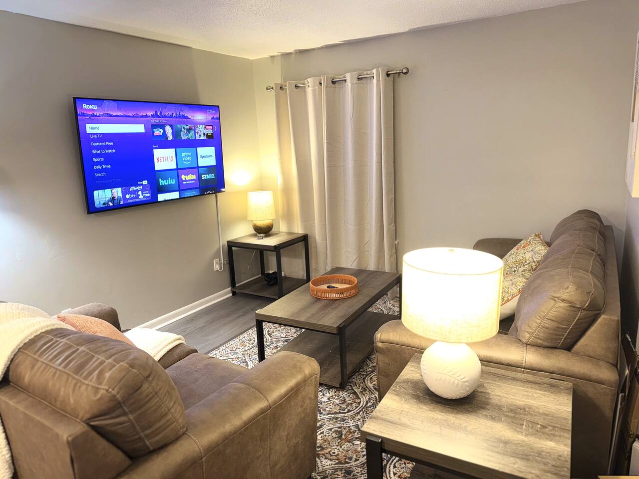 This Daleville apartment boasts 2 inviting bedrooms with 1 king bed and 1 queen bed. The living room also offers a cozy sofa bed for extra guests. The peaceful ambiance of this property is perfect for guests looking to unwind and relax. With amenities like heating, AC, WiFi, and a washing machine, your stay will be both pleasant and convenient. We hope you enjoy what our place and Daleville has to offer.